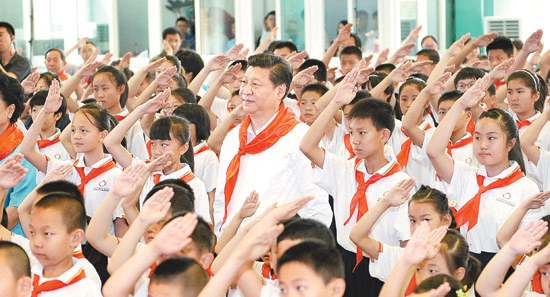 仪式结束时,习近平对少先队员们表示,参加少先队员入队仪式很受感动,让我想起了自己当年入队时的情景,感到入队是一件很光荣、很庄严的事情。今天,看到同学们矫健的步伐,听到同学们庄重的宣誓,脑子里不断闪现着一个词,那就是“希望”。少年儿童是我们伟大祖国的希望、我们伟大民族的希望。同学们要好好学习、天天向上,让今天播下的种子在将来有一个丰硕的收获。