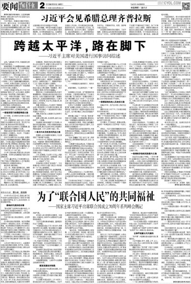 习主席出席了正在西雅图召开的中美省州长论坛。深知地方合作对发展国家关系有着重要作用,他向与会的中美省州长提出三点建议:“要有效利用中美两国经济巨大体量带来的机遇,要共同分享中美两国改革发展的政策利好,要努力发掘中美地方优势互补的潜能。”
