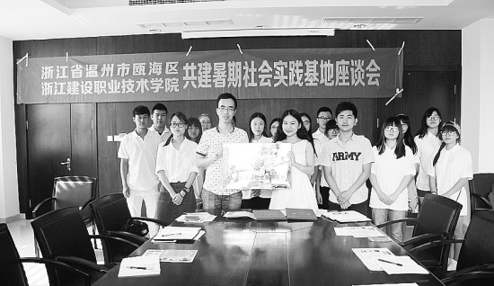 自2013年以来,产学研联盟暑期实践小分队的足迹遍布浙江省舟山、台州、温州等地,开展了《“海洋经济”——古村落的保护与开发情况调研》、《绿色建筑发展调研》、《新型城镇化背景下工程保险区域差异调研》等暑期社会实践活动,先后与玉环县楚门镇人才科技创新服务中心、共青团温岭市委、黄岩团区委、共青团温州市瓯海区委员会、乐清县团市委、中国建筑第七工程局有限公司、中国南宏电力科技有限公司、浙江中升建设有限公司等8家企事业单位签订了暑期社会实践基地共建协议,建立了三个绿色建筑文化实践基地。几年来,产学研联盟暑期社会实践团队荣获了2014年浙江省大中学生志愿者暑期社会实践活动先进团队、2014年杭州市大中学生暑期社会实践优秀团队、2015年浙江省大中学生志愿者暑期社会实践活动优秀团队等荣誉称号。(潘燕)
