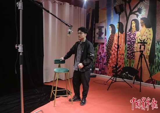 2021年4月12日,浙江省绍兴市柯桥区,30岁的程培钊在公司的直播间里,去年他曾在这里做过十几场面料直播。他所在的这家设计服务类公司专门为面料厂商、设计师和服饰企业提供信息资讯与供应链服务。位于浙江省绍兴市柯桥区的中国轻纺城是世界上规模最大、经营品种最多的纺织品集散中心,充满机遇的“纺织之都”吸引着越来越多的年轻人前来“淘金”、寻梦。 中青报·中青网记者 孔斯琪/摄