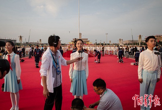 2021年7月1日早,北京天安门广场,庆祝中国共产党成立100周年大会即将开始,参加献词的少先队员、共青团员代表等做准备。 中青报·中青网记者 李峥苨/摄