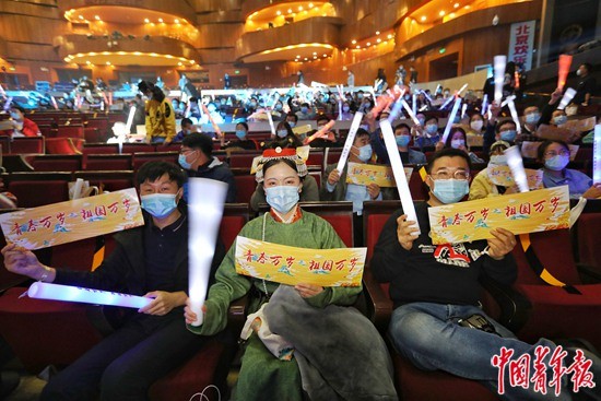 2020年10月11日晚,北京,第四届“网络青晚”上,观众热情高涨,不同圈层的青年人齐聚一堂,共同庆祝青年网络文化的嘉年华。 中青报·中青网记者 李建泉/摄