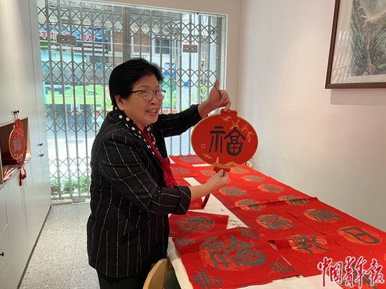 福州市鼓楼区鼓东街道的社区老人给记者展示自己手写的福字。中青报·中青网记者 田宏炜/摄