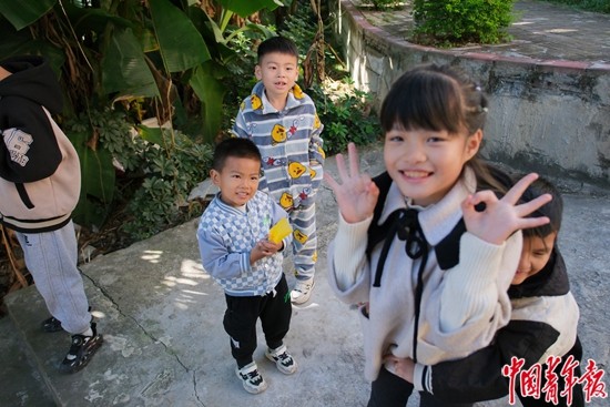 11月19日,福建省福安市下白石镇下岐村,孩子们在村中玩耍,他们大多在下白石中心小学读书,步行10分钟就能到达。中青报·中青网见习记者 田嘉硕/摄