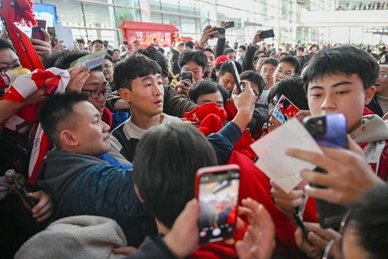 加盟成都蓉城的韦世豪成为新赛季中超本土“标王”,他在机场受到成都球迷热烈欢迎。视觉中国供图