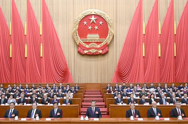 习近平、李强、王沪宁、蔡奇、丁薛祥、李希、韩正和大会主席团成员在主席台就座。