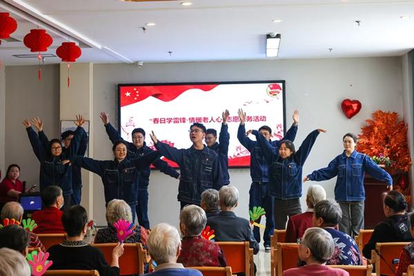 3月4日,国网昌吉供电公司组织青年志愿者服务队到昌吉市厚德康养家园开展“春日学雷锋·情暖老人心”志愿服务活动。志愿者为老人们表演文艺节目,陪老人交谈,讲解用电安全知识等,用实际行动传承雷锋精神。何玉成/摄
