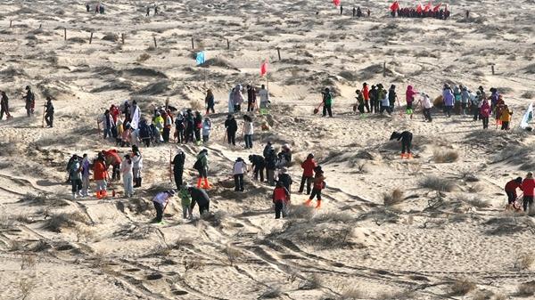 来自福建的志愿者高玲敏连续两年参加治沙植树活动,她笑着说:“一开始只是抱着体验生活的想法,现在却全程投入。在这片沙漠里种下的不仅仅是梭梭树,更是我们的梦想和希望。”