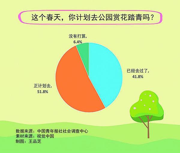 调查显示,这个春天,93.6%的受访者计划去公园赏花踏青,其中41.8%的受访者已经去了。