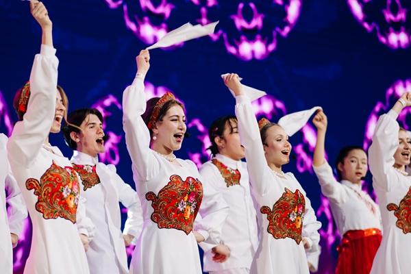 在第四篇章,《母亲》的曲调婉转悠扬,压轴曲目《在希望的田野上》更将演出推向高潮。中俄青少年手拉手齐唱,歌声中充满对美好未来的憧憬,感染了观众。