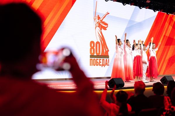 开场曲《喀秋莎》由中俄青少年齐声唱响,熟悉的旋律唤起观众的共鸣,歌声清亮而深情,瞬间点燃全场热情。接着,《长城谣》《南泥湾》《游击队歌》《在太行山上》等中国抗战歌曲重现了中国人民抵御侵略的壮烈历史,中俄青少年手拉手合唱团的团员以饱满的情感、精准的音色,将革命先辈的昂扬斗志演绎得淋漓尽致。《鹤群》《胜利节》等俄罗斯歌曲则缅怀了苏联卫国战争的英雄事迹,展现出两国人民并肩作战的深厚情谊。