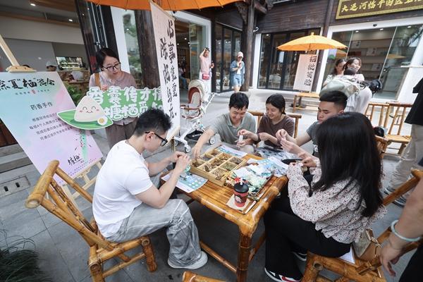 5月25日,参加游园会的单身青年参与中药香囊制作。当日,浙江省杭州市临平区塘栖镇举办“栖才相约”之端午“粽夏‘栖’游会”,吸引辖区30位单身青年人才共赴这场“文旅+非遗+社交”的沉浸式体验之旅。活动搭建起互动交流的平台,让年轻人一起参加非遗美食手绘、中药香囊制作、包粽子、写扇面、猜字谜等趣味打卡任务,增进协作情谊、感受民俗魅力,推动青年人才留在塘栖、爱在塘栖。新华社记者 徐昱/摄