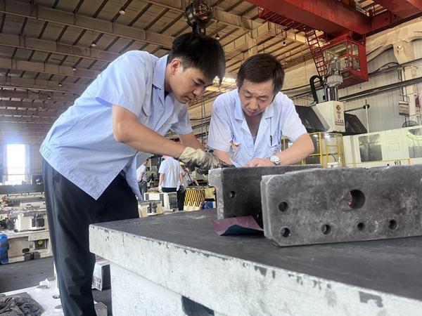 为追赶进度,他主动加码训练:夏天的车间犹如“蒸笼”,高强度训练下,他的衣衫反复被汗水浸透,干后结出层层盐花。他每天从清晨6点训练到晚上9点,午间匆匆吃口饭便立刻返回实训场;深夜,他仍手捧理论书籍逐字钻研,直到双眼难睁才休息。在图纸绘制上,别人画一遍的图纸,他至少画3遍。“先凭记忆临摹,再照着实物校准,用尺子反复丈量线条误差,必须通过多次练习,形成精准记忆。”党金鑫说。