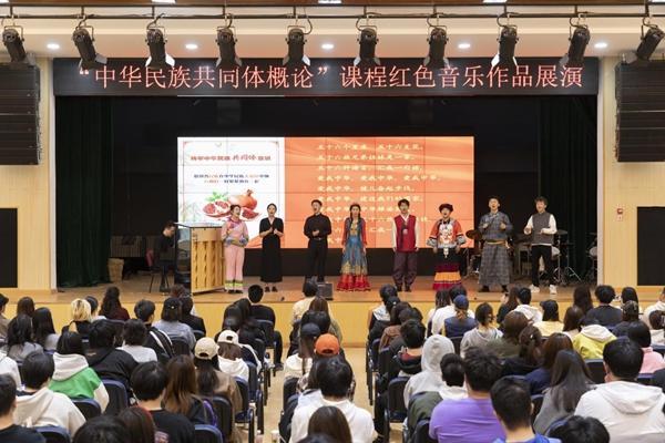 在北京联合大学中华民族共同体概论课堂上,一场场别开生面的红色音乐会点燃了学生们的热情。来自不同民族的师生共同演唱《北京的金山上》《打起手鼓唱起歌》等红色歌曲,令在场学生备受触动。不仅如此,这堂课还把思政“小课堂”同社会“大课堂”相结合,鼓励师生走出北京,奔赴边疆民族地区开展基层调研、红色研学、推广普通话志愿服务等活动。