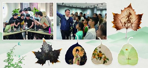 同时,他长期尝试以体验课、短视频等方式让更多人了解、关注叶画。课上,丁力指导小朋友掌握叶片处理等基础技法,讲解文化知识,从中发掘具备潜力的传承苗子。