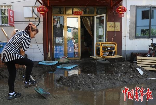 7月29日下午,持续147个小时的强降雨过后,北京迎来晴天。北京市密云区西湾子新村祥芹顺天商店老板娘陈玉香从密云城区打车赶回来捣鼓刚买的发电机。受暴雨影响,不少受灾严重的地段处于断电断网状态。外甥将家里存的一桶汽油匀了大半给陈玉香,“够这超市使一天一宿了”。