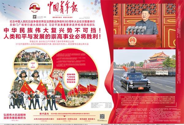 中华民族伟大复兴势不可挡!人类和平与发展的崇高事业必将胜利! 来源:中国青年报(2025-09-04  01版)