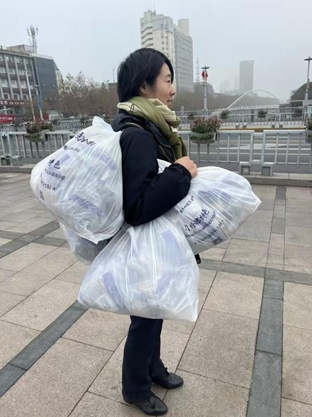 父亲放疗结束,陈海琴打听着找了知名的中医,每半个月扛4大包药回家,同事帮着她一起分拣。
