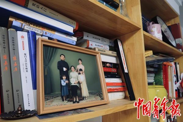 他的电脑里收藏着孩子们的课表和荣誉证书,工作台的架子上放着家庭相册。其中不少照片是出游时拍的,他们每年都会组织一次家庭旅行。