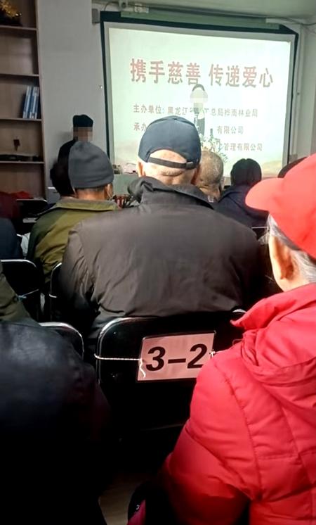 在李丽提供给中青报·中青网记者的一段讲课视频中,这位40岁左右、穿着白色外套的“主任”正在宣讲α-亚麻酸(紫苏油的核心活性成分——记者注)的好处,表示“可以把人的血脂血栓有效清理掉”。授课背景板上写着“携手慈善 传递爱心”字样,主办单位写着“桦南林业局”。