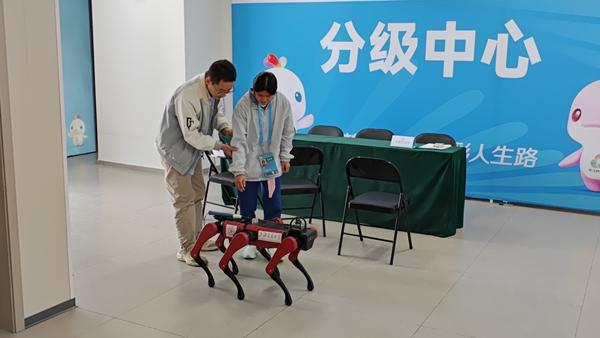 上海交通大学导盲六足机器人研发人员杨利民向中青报·中青网记者介绍,赛事开始前,团队用多种传感器扫描整个场馆,标注运动员上下车点、训练馆入口、休息区、卫生间等关键位置,“再将这些坐标导入系统,让机器人能像导航软件一样规划路线”。