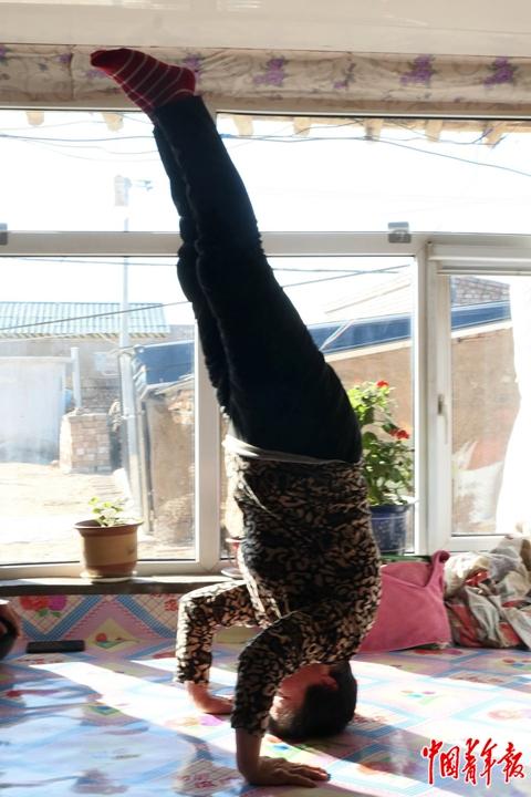 张喜英是其中之一,她的练习频率从过去一天两次变为“看天气”——天暖时天天练,天冷时,只在有人来访时,她才去由藜麦储存室改造的瑜伽馆练习。所有上电视节目表演的动作,她都没忘记,她随手就向记者在炕上展示了“倒立”。