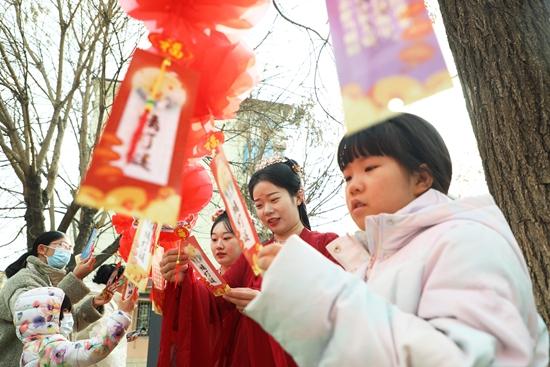 2月23日,在河北省唐山市丰润区燕山路街道燕山三社区,居民参与猜灯谜活动。元宵节临近,河北各地举行丰富多彩的活动迎接佳节到来。朱大勇/摄(新华社发)