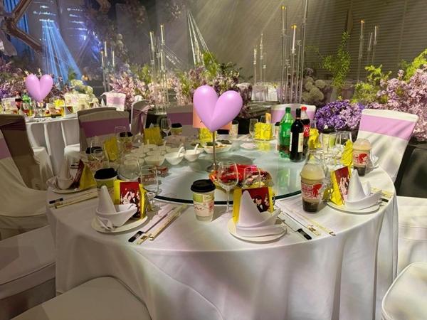 受邀的宾客多数是年轻人,许多人第一次在婚宴上喝茶饮,觉得新奇。一开始,韦晨昊担心长辈喝不惯甜饮,为他们准备了纯茶,每一桌也摆放了酒,有需要的宾客可以自行选择喝酒。价格上,韦晨昊计算得出,奶茶和酒水的支出差不多,婚礼结束后退回去不少未开封的酒。