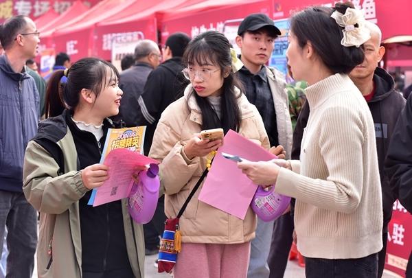 11月30日,广西贺州,求职者在向用人单位了解咨询就业信息。视觉中国供图