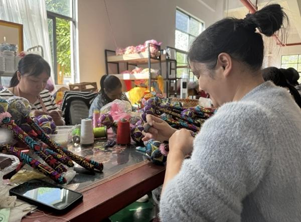 马桂验的老公在外打工,家里要种田又有两个孩子要照顾,她脱不开身外出打工,只能在家里干着急。如今,她成了绣球公司的绣娘,闲暇时来制作绣球,赚的钱也可以满足家中的日常开销。“现在有工厂,有订单保障,做得多,卖得多,也赚得多。”