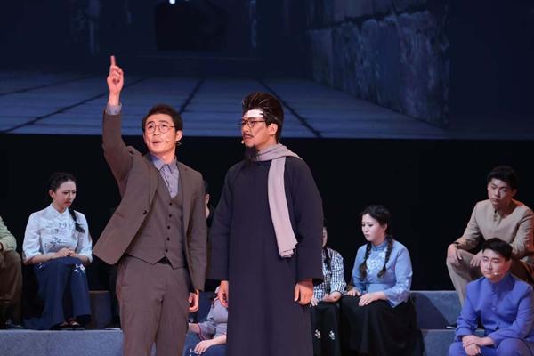 “你是中国人吗?是!你爱中国吗?爱!你愿意中国好吗?愿意!”剧目演出中,原本因剧情需要设计的舞台“爱国三问”,得到了台上演员和台下观众共同的回答。