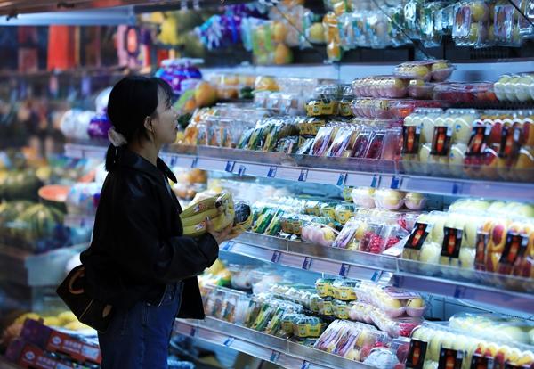 4月16日,市民在江苏省淮安市一家超市购物消费。视觉中国供图