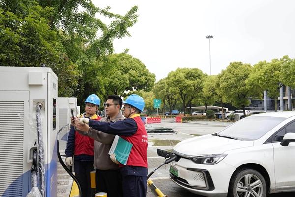 5月4日,浙江省“青年文明号”——国网平湖市供电公司新仓供电所高压供电服务班,开展了“亮号护行”专项行动。图为青年志愿者倪国龙、徐磊在沈海高速G15平湖服务区(沈阳方向)充电桩开展充电数据分析预测。得益于国网智慧车联网平台,工作人员可进行24小时线上运营监控,通过“互联网+线下驻点服务”,对服务区16个充电桩指示灯、操作界面、充电枪连接头外观等情况进行排查,重点针对低功率、充电连接装置损坏等进行治理,及时更换可能存在隐患的零部件,并帮助车主解决在充电中遇到的各种问题,普及充电安全知识。沈文文/摄