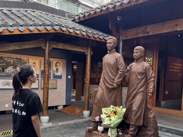6月21日,在安徽省安庆市迎江区南水关巷的陈延年、陈乔年读书处(以下简称“二陈读书处”),00后海归文创青年黄申漫步在这片肃穆的青砖院落,令她最为震撼的是庭院中兄弟二人的雕像,他们年轻挺拔的身姿与远眺的目光,仿佛在诉说“决不跪下”的铮铮铁骨和“让后代享受幸福”的赤子情怀,将人拉回到那个“觉醒年代”。