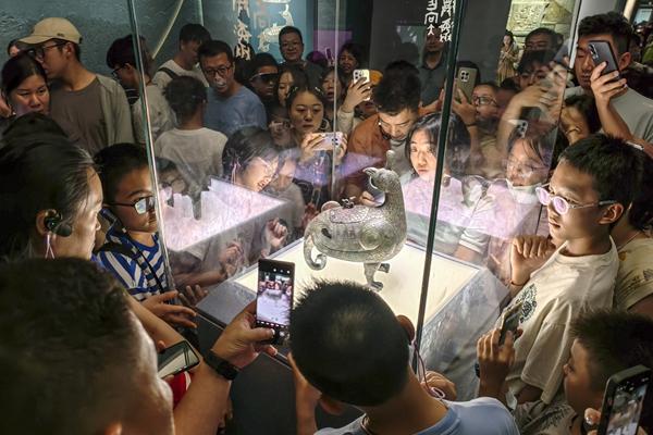 7月13日,山西太原,游客在山西省博物院参观游览。暑假期间,山西博物院人流如织,迎来旅游高峰,不少大中小学生相约前来感受历史文化的魅力,拓宽知识面,充实暑假生活。刘宝成/视觉中国