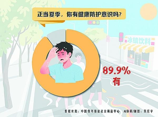夏季高温、暴雨来袭,“烧烤模式”与“桑拿蒸笼”双重夹击,热射病、基孔肯雅热等疾病也威胁着公众健康。上周,中国青年报社社会调查中心联合问卷网(wenjuan.com),对1335名受访者进行的一项调查显示,热射病(57.0%)、基孔肯雅热等蚊媒传染病(54.6%)、暴雨汛情后的疾病隐患(53.2%)是受访者认为最需警惕的三大夏季健康风险。面对这些健康隐患,近九成(89.9%)受访者有健康防护意识。