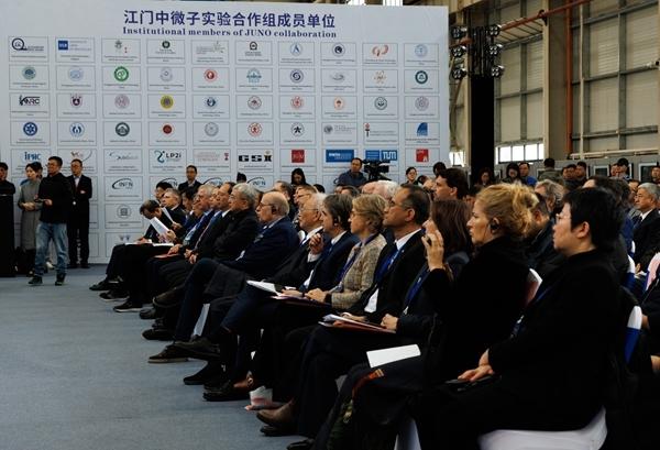 11月19日在广东省江门市拍摄的发布会现场。当日,中国牵头的国际合作项目江门中微子实验(JUNO)装置在广东省江门市发布了其建成后的首个物理成果:研究人员通过对今年8月26日至11月2日共59天有效数据的分析,测量出描述中微子振荡的两个参数,精度比此前实验的最好记录提高了1.5-1.8倍。这意味着其探测器关键性能指标全面达到或超越设计预期。