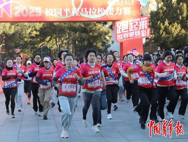 12月7日,北京科技大学,在“一二·九”运动纪念日前夕,一场校园半程马拉松接力赛在该校举行,学子们在奔跑中传承爱国精神,接力青春梦想。据了解,2025年正值“一二·九”运动90周年,全国多所高校及机构通过合唱比赛、主题展演、运动打卡等形式开展纪念活动,传承爱国主义精神。中青报·中青网记者 陈剑/摄