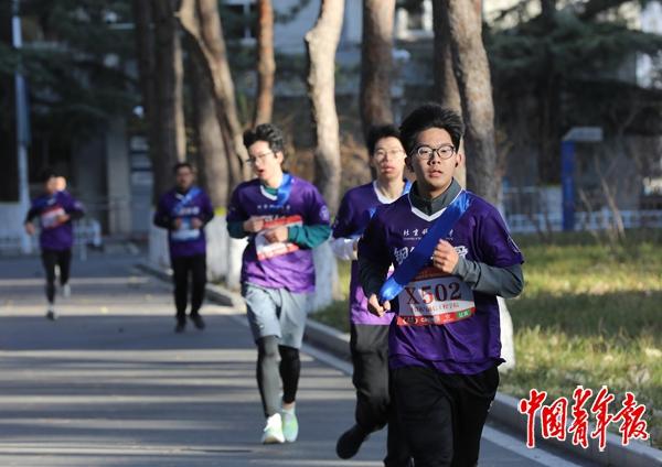 12月7日,北京科技大学,学子们在跑步比赛中。中青报·中青网记者 陈剑/摄