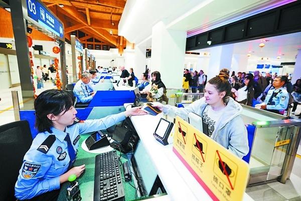 记者从海口出入境边防检查总站获悉,截至2月23日17时,春节假期,海南边检机关共验放出入境人员8.6万余人次,客流量较去年增长43.3%。蒙绪顺/摄(新华社发)