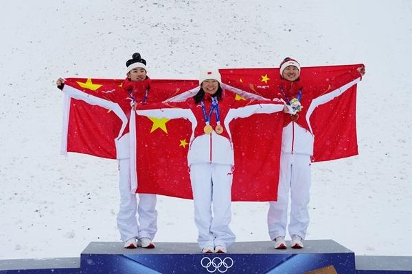 苏翊鸣夺冠后不到两个小时,徐梦桃在女子自由式滑雪空中技巧项目上成功卫冕。次日,宁忠岩在速度滑冰男子1500米项目上打破了欧美选手的百年垄断,爆冷夺冠。2月20日,徐梦桃的丈夫王心迪在男子自由式滑雪空中技巧项目上夺得冠军,“金牌夫妻”美名传遍大江南北。到2月22日,米兰冬奥会闭幕当天,谷爱凌又以完美发挥顺利兑现中国代表团在本届冬奥会的最后一个夺金点。中国队至此获得5枚金牌,金牌数追平了此前境外参加冬奥会的最佳纪录(2010温哥华冬奥会5枚金牌),奖牌总数达到15枚,大幅超过此前11枚的最高纪录(2006都灵冬奥会和2010温哥华冬奥会)。