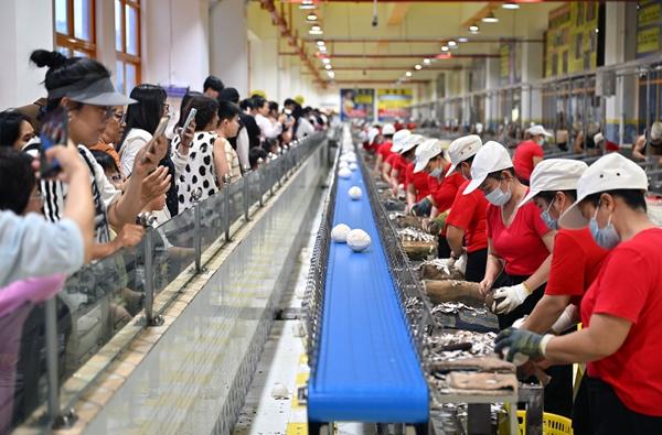2月27日,市民、游客在椰树集团工厂参观。春节假期以来,海口工业体验游受到热捧。新华社记者 郭程/摄
