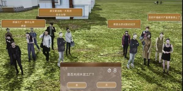 在虚拟世界的余村,学生一直在做着可能改变乡村命运的决定:新建工厂选址应该靠近河流和森林吗?2000年前后,如果关停水泥厂和矿山,村里会失去主要经济来源,作为村民的“我”应该支持还是反对?