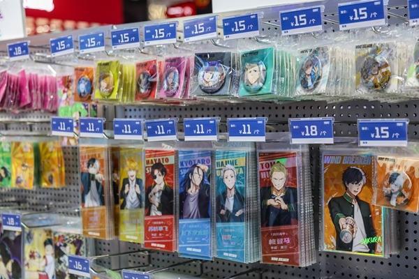 在他的店里,消费者买满一定金额可以参与抽奖,奖品是限量贴纸或热门角色的小立牌。柜台上方挂着“新年限定”的条幅,一排排徽章在灯光下闪着光。“现在竞争激烈,光有货不行,还得有氛围。”陈龙起说,即便顾客只是买一个29元的徽章,店员也会热情介绍背后的IP故事,“我们卖的不是冷冰冰的商品,是一份好心情。”