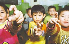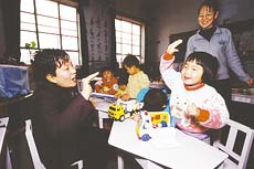 如今,小瀚晨每天早晨都迫不及待地要去幼儿园,即使生病在家也想班里的同学。而这都归功于学校新开办的以手语为主,并结合中文书面语教学的双语班。