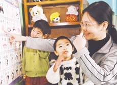 李沁园老师介绍:“这儿的孩子大多属极重度聋。他们刚来时都很孤僻,不愿和老师说话,有的一天都看不到笑容。”现在,孩子们争相用手语交谈、抢答问题或在白板上做搭配游戏,以致到老师跟前打“小报告”,活跃的气氛令人感到特别欣慰。