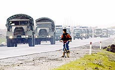3月5日,马丁。土耳其100多辆军车经过东南部一条公路,驶向土伊边境地区。尽管议会尚未允许美军进驻本国,但军队并未减缓向边境增兵的步伐。新华社记者刘宇摄