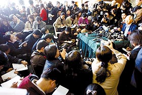 今天下午2时,吴敬琏委员召开的新闻发布会,在北京京丰宾馆政协委员驻地举行。来自全国的近百家媒体的记者,早早挤在一个小咖啡厅等待吴敬琏。