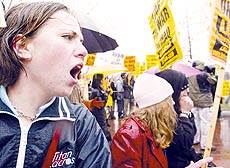 ▲雨中抗议的美国人 3月20日,近百名美国民众冒雨在华盛顿白宫前抗议布什政府对伊拉克发动战争。当天美国军队对伊拉克发起了攻击。新华社记者吕明响摄 |