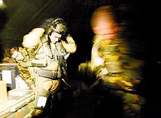 ▲准备出发 2003年3月21日,驻科威特的英国空军士兵整装,准备出发执行飞行任务。新华社/美联 |